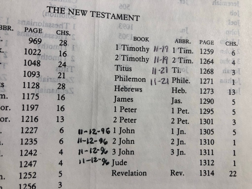 Have you read through the entire Bible? My first attempt was in November, 1996. I know this because I planned to start by reading the shortest books first. Apparently, I lasted almost a week and then my dates marked in the table of contents disappeared. I still have the Bible I used and it has since been read cover to cover many times, three times in one particular year. Kids today would call my initial attempt an epic fail, but I call it a learning experience. Firstly, I learned that I am far too much of a perfectionist. Missing a day or two is not a valid reason to give up. Secondly, I realized the beginning is the very best place to start.