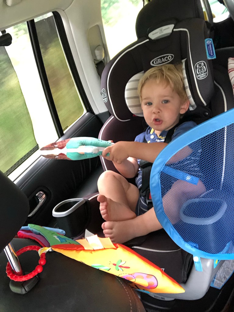 My grandson, Thomas, is almost two and he still struggles with car rides. He lives almost two hours away so in order to visit extended family, his parents must drive. His mom has tried everything to ease the trip for him but getting out of the car is really the only thing that helps. He will read or color or snack for only so long. On the rare occasion he may nap, but mostly they talk. She tells him about where they’re headed and how they’ll get there, pointing out landmarks that are gradually becoming familiar to him, though his vision is obscured by his car seat.