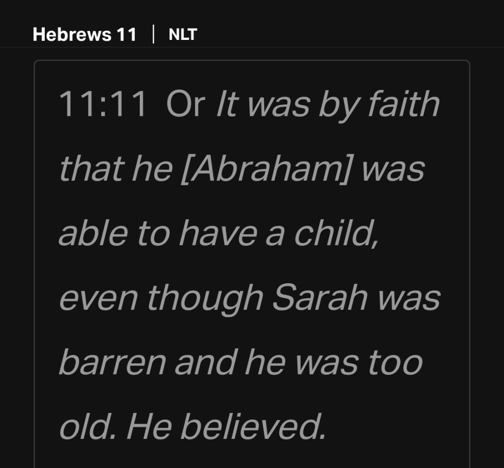 “It was by faith that even Sarah was able to have a child, though she was barren and was too old.