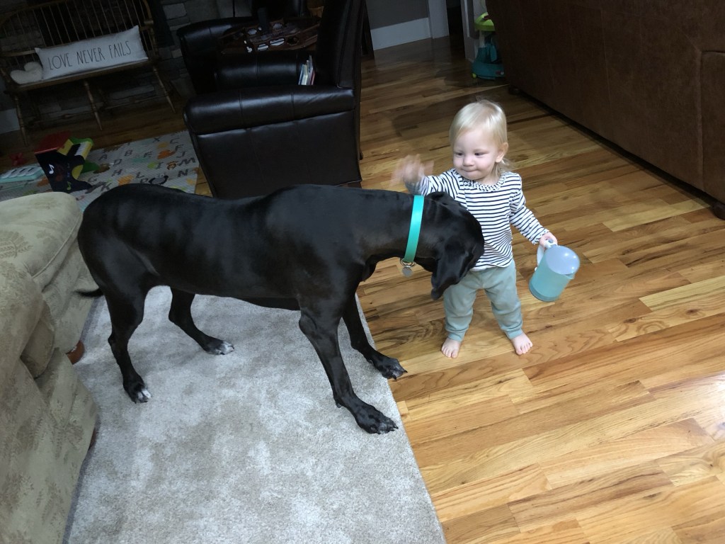 My grandchildren are excellent at this sort of thing. Their current favorite is getting Ella, our Great Dane, to go outside. At five and a half years old, she struggles with arthritis and is moving slower these days. All I need to do is announce that I’m taking the dogs outside and Thomas or Amelia head to my bedroom to retrieve Ella. They’re so proud when she hobbles along beside them, their little legs move at just the right pace, and I don’t have to coax her at all.