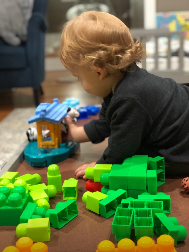 Thomas was still too young for Legos. He thought the game was emptying the bucket. As soon as the crashing noise ended, he was on to something new. I called his attention back to the tower I was building but when he swatted it, it stayed put. What fun is a tower that can’t be knocked over? Now he’s learned to stack blocks of any shape and size on his own but his favorite part is still knocking them down.