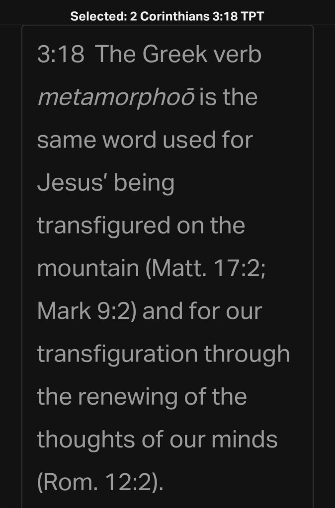 We are being transfigured into his very image as we move from one brighter level of glory to another.