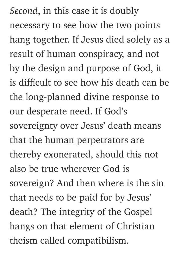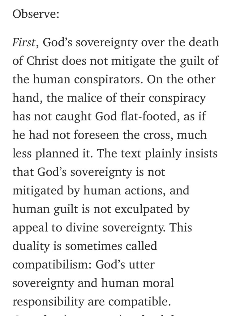 God’s sovereignty and human culpability are compatible. God can be God and I can have free will and His purpose can prevail.