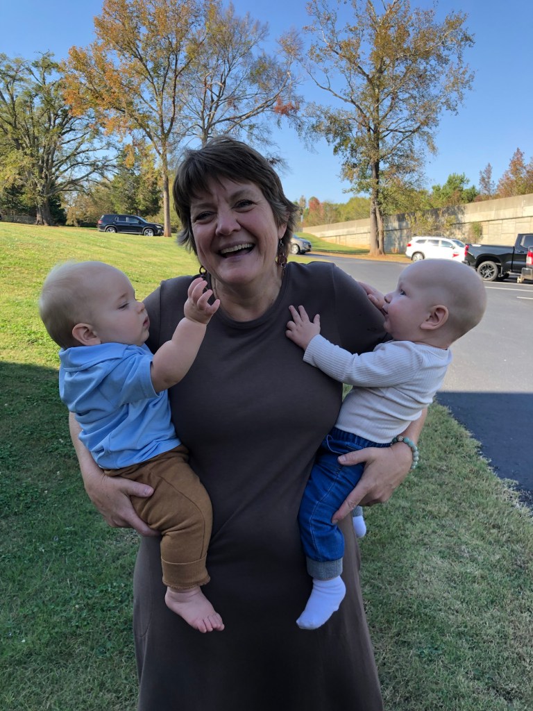 Our 2024 grand boys are now nine and five months. Timothy is crawling at warp speed in his own unique little manner, left leg curled under ready to sit up in a skinny minute. He’s pulling up and just this week, he’s also climbing stairs. Cruising and toddling are just breaths away. Ezra already inches his way from one end of his crib to the other nightly in a very efficient army crawl, and anytime he’s placed on his back lying down, he immediately flips over. He’s scooting around, mostly backwards, in his activity walker. Both boys just want to do everything their older siblings are doing, especially running.
