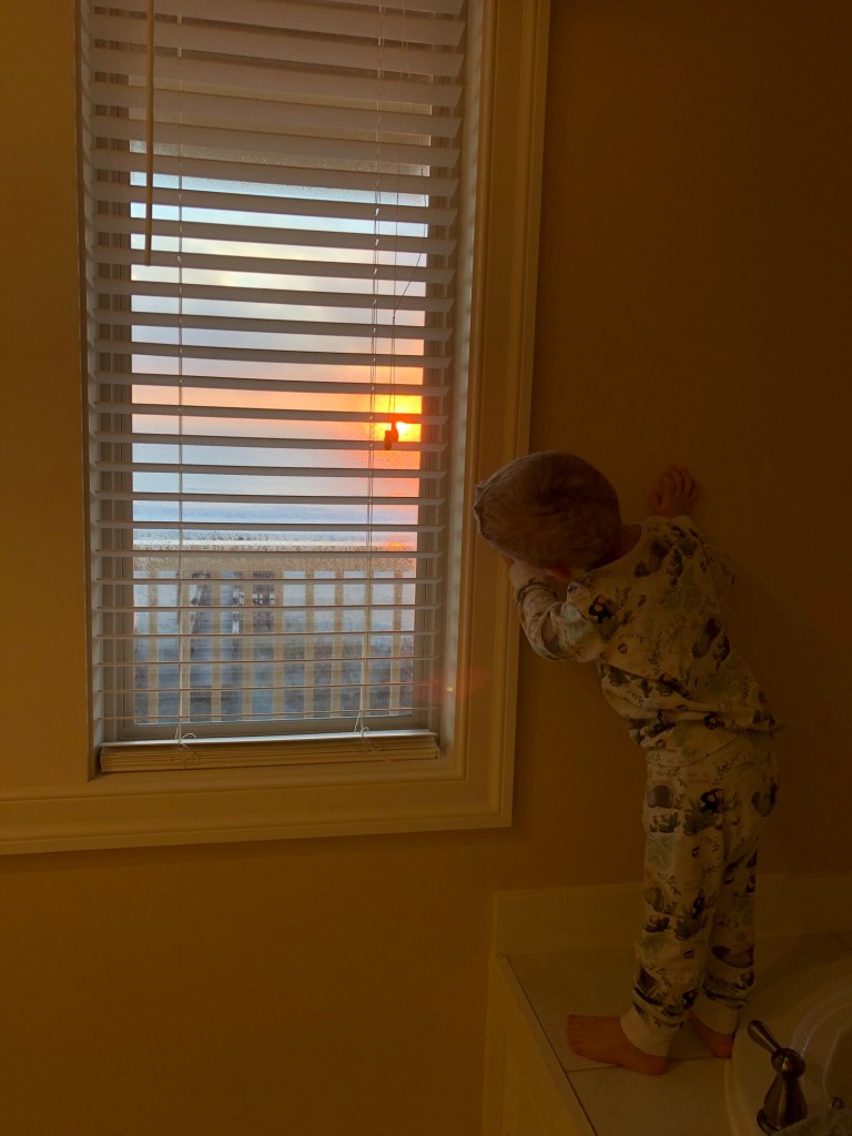 My camera lens simply cannot capture what my eyes see. I don’t often see a sunrise. I’m more of a sunset sort of gal, but with four grandchildren under three at the beach with me this week after Christmas, I’ve enjoyed my fair share of both. This morning as the sky lighted over the ocean, the cloud bank looked like mountains lining the horizon. I tried from several different angles to capture the scene but nothing even came close. The changing skies truly do reflect their Creator gloriously and the sweet singer of Israel, David, paints a more beautiful picture than any lens ever captured.