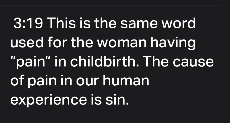 “Then God said to the woman, “I will cause your labor pains in childbirth to be intensified; with pain you will give birth to children.