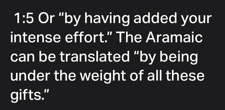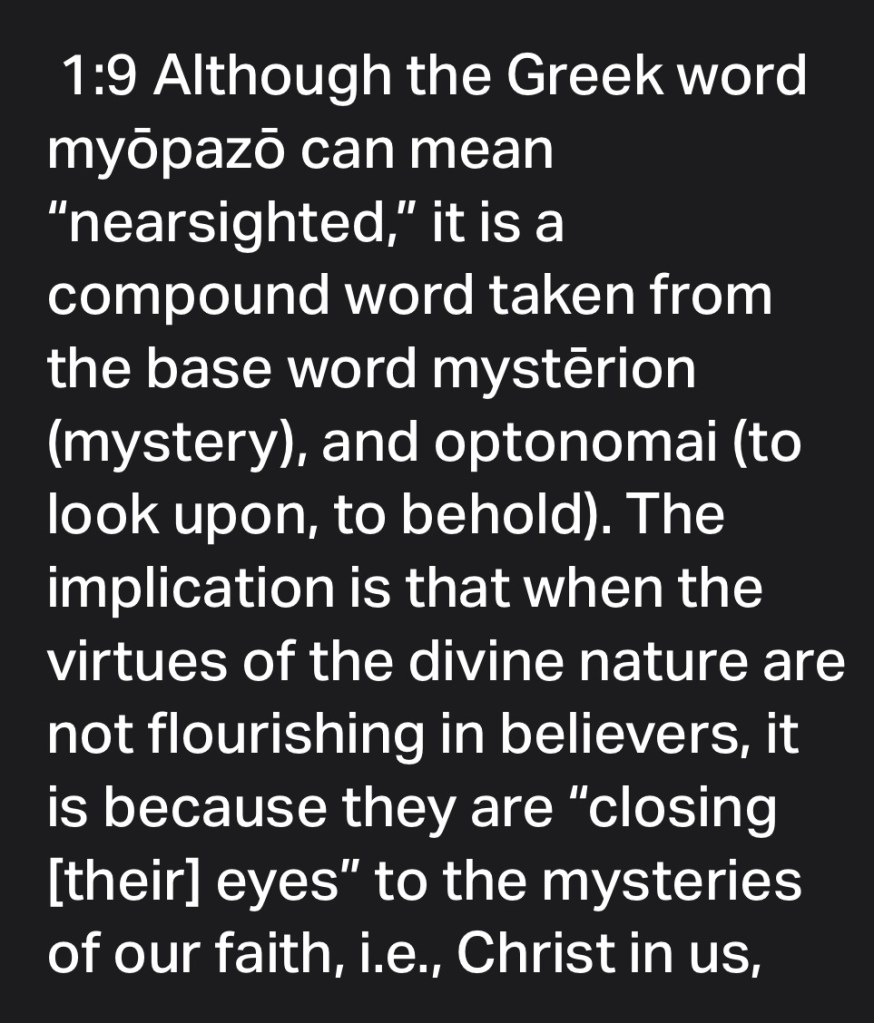 Peter’s list of godly characteristics is not a checklist to attain as if salvation comes by works. This is what the Jews believed and what Jesus constantly warned against in no uncertain terms. Peter is describing life in the Spirit, or as Paul put it, walking by faith and not my sight. These fruit are the obvious indicators of a mature or maturing faith in Jesus. By abiding in Christ and submitting ourselves constantly to the Father’s pruning, as John wrote, we find in ourselves the very nature of God, in whose image we are formed, emerging. The following notes from the Passion Translation add depth to Peter’s intended meaning.