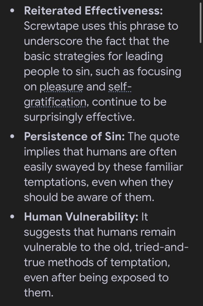 Every veteran Christian should find this laughable. Time and again as scripture brings conviction of sin, I find myself confessing the very same things to God, ashamed at having dredged up this old thing yet again. In his Screwtape Letters, C.S. Lewis gives voice to one of Satan’s emissaries charged with training a new generation of demons saying there’s no need for novelty, no sense in working too hard because “the same old tricks keep working.”