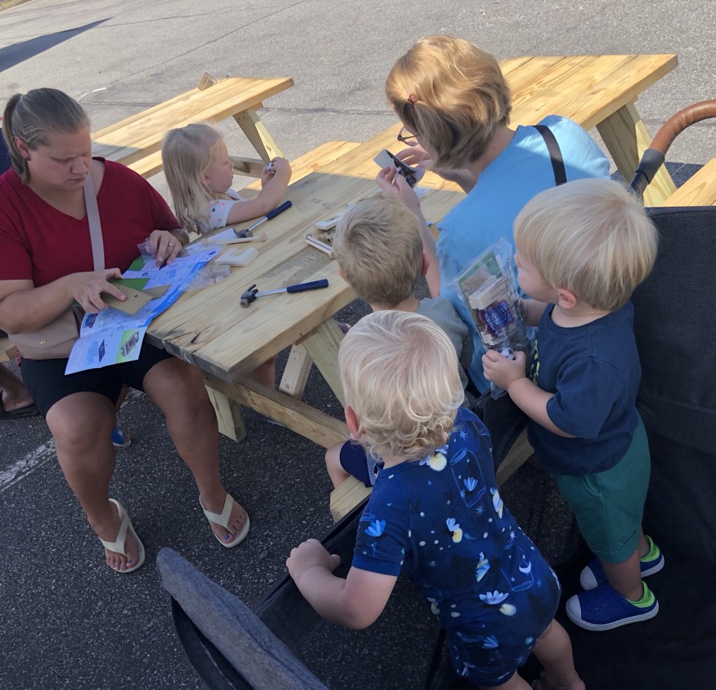 Thomas and Amelia each earned their Junior Builder Badges after completing six projects. These events are offered free to families in the community. The project, I noticed, required patience and a sense of humor from everyone involved but it was a great value and provided families with a way to have fun while learning to work together. Just maybe the best things in life are actually still free.