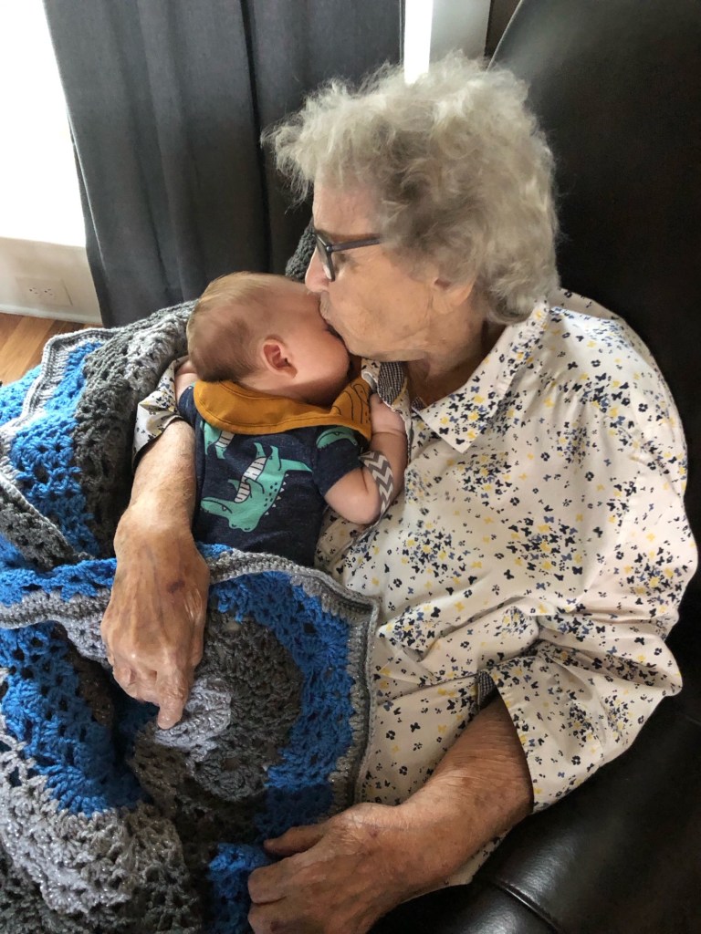 Papa was hospitalized twice before his death but he was at home when hospice was called in hours before his passing. My mom and dad and mom’s brother were with my granny in those final hours. Papa asked for a shave so dad helped my mom wash his hair and give him a clean shave, loving him tangibly in those precious last moments. Since Granny entered the nursing home, mom and dad have cared for her just as tenderly and diligently. On the morning of her passing, my dad had an early doctor’s appointment. As is their habit when they drive into town for appointments, my parents stopped by my house for coffee and a meal or snack before driving the hour home. My grandchildren were here so they lingered longer than usual. They made a couple of stops on their way to the nursing center for their daily visit with GrannyBob.