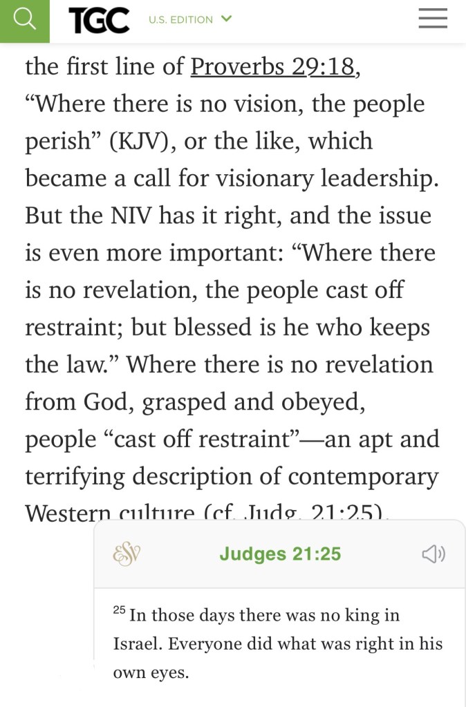 “Where there is no vision [no revelation of God and His word], the people are unrestrained; But happy and blessed is he who keeps the law [of God]. [1 Sam 3:1; Amos 8:11, 12]”
