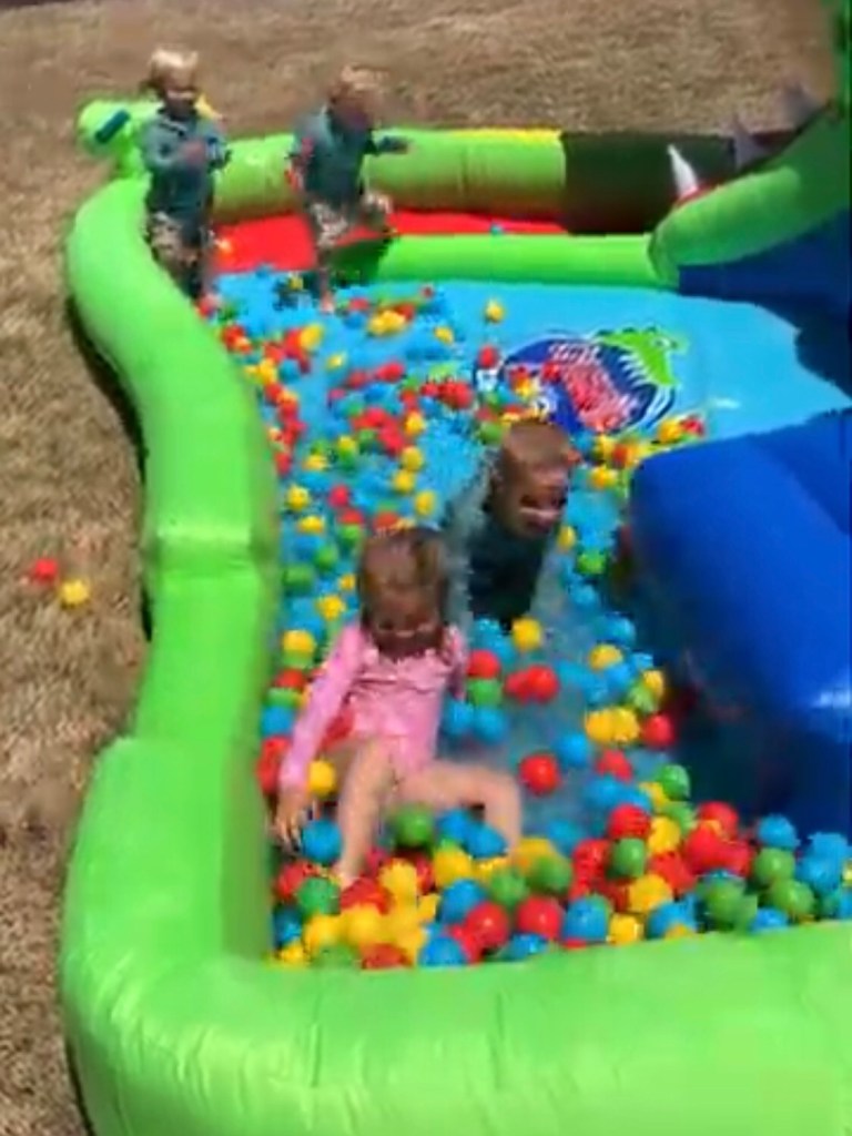What do you get when you inflate one splash pad and add water and two hundred ball pit balls? Happy grandchildren!Thomas, Amelia, Timothy and Ezra enjoyed hours of fun-soaked outdoor play. At one point, Timothy lounged on the edge of the inflated surround mindlessly collecting balls he had been tossing out a moment earlier. When the kids expend energy at this rate but refuse to nap, they often stare off into space, asleep on their feet. Timothy retrieved balls, trancelike, until the final green one, which had rolled slightly out of reach. He glanced up at me, pointing, and said in his most precious southern drawl, “That one ball w-a-y over there.” I tilted in my lawn chair and tossed the stray ball to him. He smiled before turning to belly flop into the water.